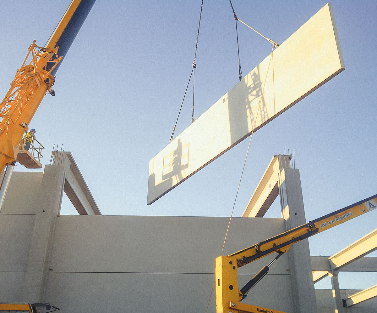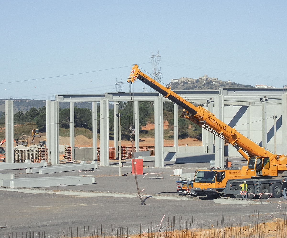 na montagem de estruturas pré-fabricadas em betão.