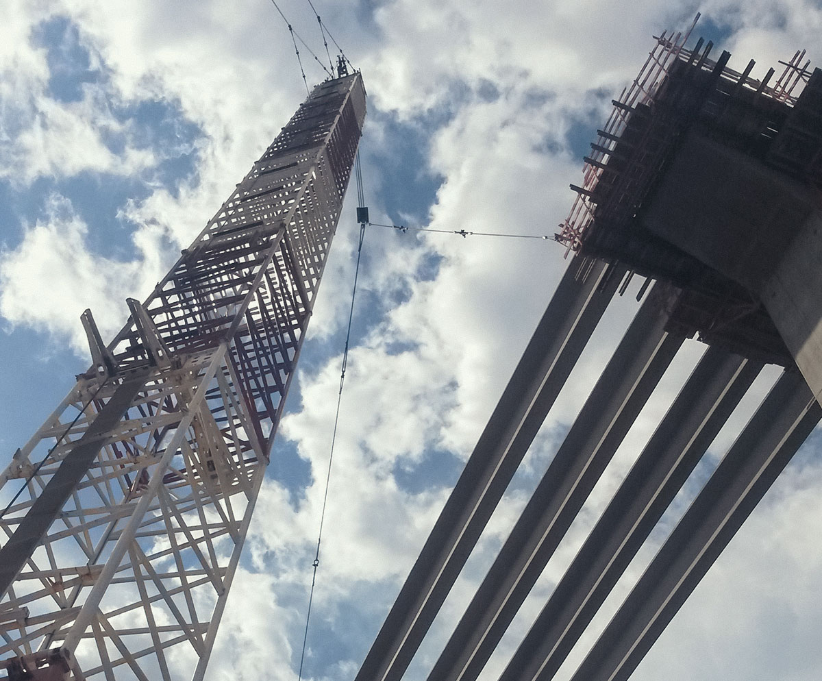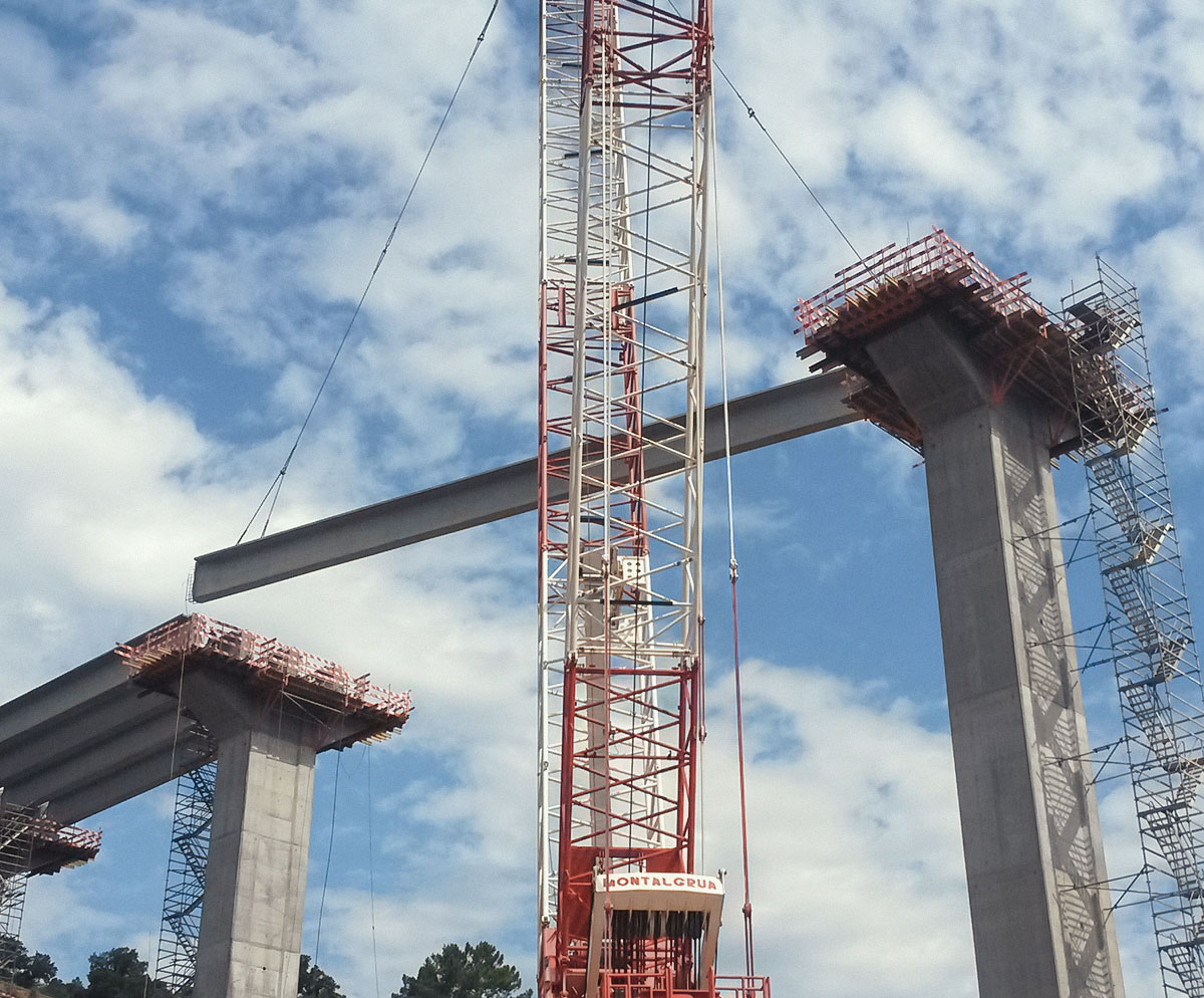 Montagem de Vigas I200 com 42 a 71 toneladas e prélajes em Viaduto com 40 metros de altura.